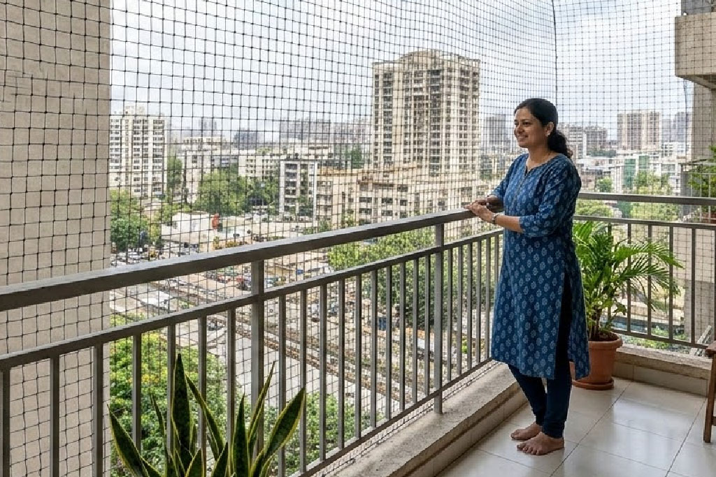- Prevents Bird Entry – Installing balcony pigeon nets stops pigeons and other birds from entering balconies and open spaces.